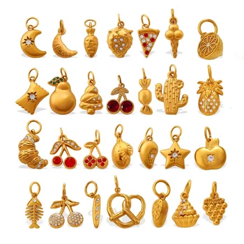 Gourmet Gallery | 18K PVD Gold Plated Stainless Steel Bakery Food Fruit Charm Pendant for Jewelry Making | Waterproof & Durable