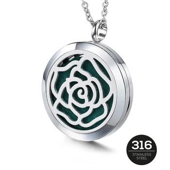 Rose Essential Oil Diffuser Pendant | Rose Gold PVD Plated Stainless Steel Aromatherapy Locket Necklace | Aroma Diffuser Jewelry