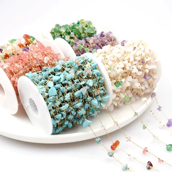 Affordable Multi-Color Natural Stone Chip Gold Copper Chain for Jewelry Making | Sold by Meter