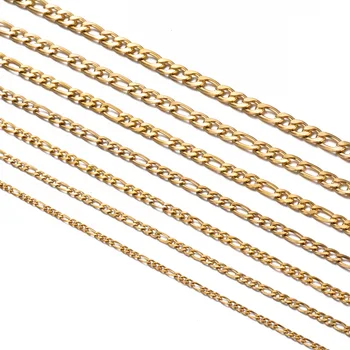 Flat Figaro 3:1 Chain 18K PVD Gold Stainless Steel | Hip Hop Cuban Style Titanium Steel NK Chain for DIY Jewelry Making
