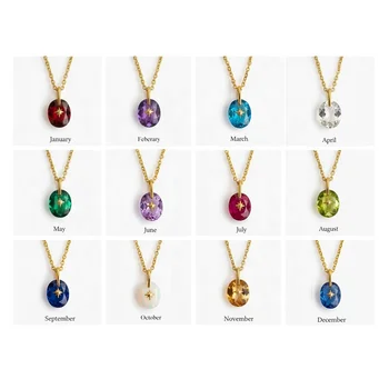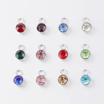Stainless Steel Hang Pendant 12 Month Birthstone Charms for DIY Necklace Bracelet for Jewelry Making