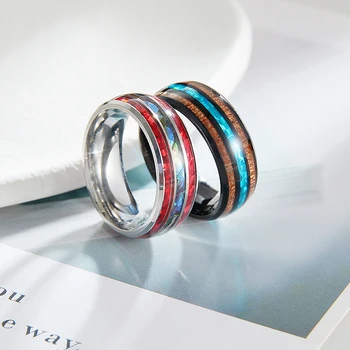 Stainless Steel Viking Ring with Rosewood Opal Abalone | Custom Antler Hunting Band for Men Women