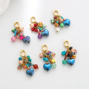 Boho Multi-Bead Dangle Charm | Natural Stone Crystal Pendants & 18K Gold Plated Brass Lobster Clasp for DIY Jewelry Making