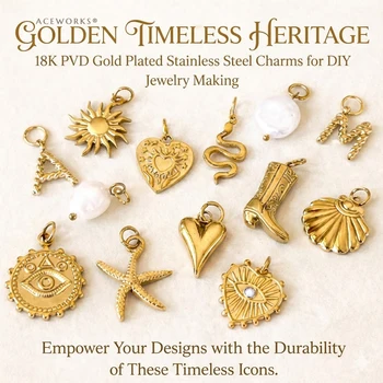 Golden Timeless Heritage | 18K PVD Gold Plated Stainless Steel Charms for DIY Jewelry Making | Letter, Heart, Evil Eye Pendants