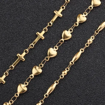 Waterproof Heart, Spindle, Cross Shapes PVD Gold & Silver Stainless Steel Linked Chain | 5.2*9.8mm Link, 10 Meters Per Roll
