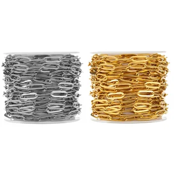 18K Vacuum Plated Stainless Steel Oval Flat Link Paperclip Chain | Gold and Silver Decorative Necklace Chain for Jewelry Making