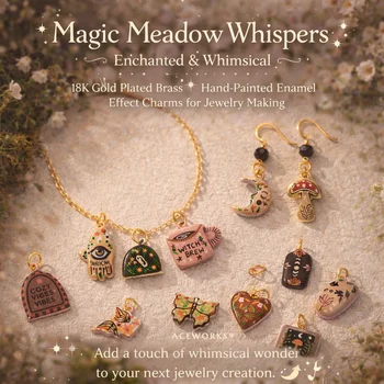 Magic Meadow Whispers | 18K Gold Plated Brass Hand Painted Enamel Effect Charms for Jewelry Making | Whimsical Celestial Pendant