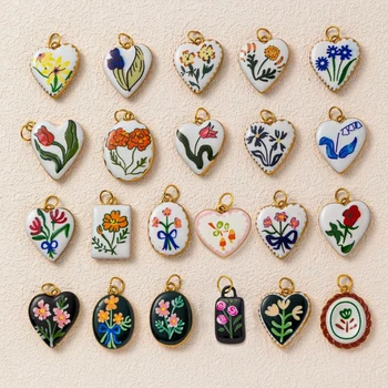 Folk Blossom Tales | 18K PVD Gold Plated Stainless Steel Hand Painted Flower Charm Pendant for Jewelry Making Waterproof Durable
