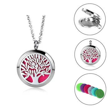 Essential Oil Diffuser Necklace | 18K PVD Gold Plated Stainless Steel | Tree of Life Aroma Diffuser Aromatherapy Locket Pendant