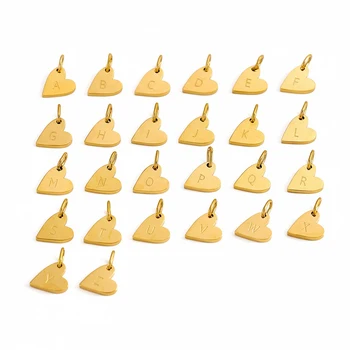 Heart Letter Charm | 18K PVD Gold Plated Stainless Steel Alphabet Initial Pendant for Jewelry Making Waterproof Hypoallergenic