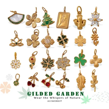 Gilded Garden | 18K PVD Gold Plated Stainless Steel Leaf & Flower Charms Pendant for Jewelry Making | Tarnish Free & Waterproof