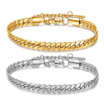 Cuban Link Chain Bracelet 18K PVD Gold Silver Stainless Steel | Adjustable High Polish Curb Bracelet for Men Women