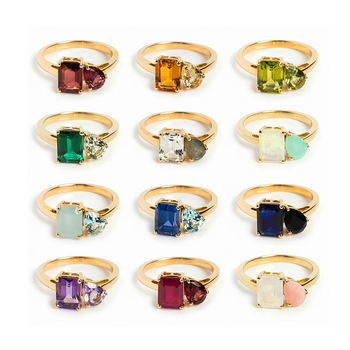 Toi Et Moi anello Birthstone | 18K PVD placcato oro acciaio inox due pietra zircone regolabile anello aperto | Impermeabile appannamento libero