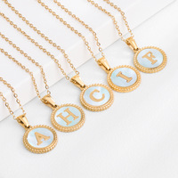 Letter Disc Necklace 18K PVD Gold Plated Stainless Steel Initial Pendant with Blue Enamel Round Charm Hypoallergenic Jewelry