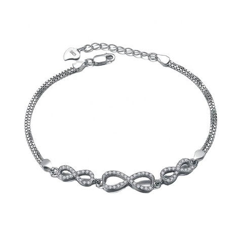 New Three Infinity Symbols Box Chain 925 Silver Infinity Bracelet