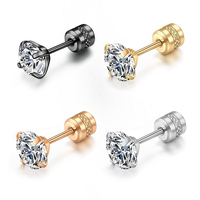 20G Zircon Studs | 18K PVD Gold Plated Stainless Steel 0.8MM Rod Labret Cartilage Piecing Earrings | Waterproof & Hypoallergenic