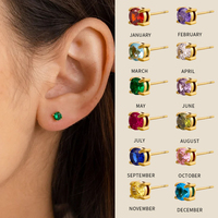 Zircon Birthstone Stud Earrings | 18K PVD Gold Plated Stainless Steel Round CZ Birthstone Jewelry | Hypoallergenic, Waterproof
