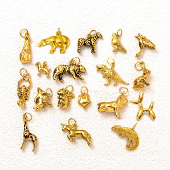 3D Animal Kingdom | 18K PVD Gold Stainless Steel Pendants | Dog Mermaid Lion Dolphin Giraffe Horse Charm for DIY Jewelry Making